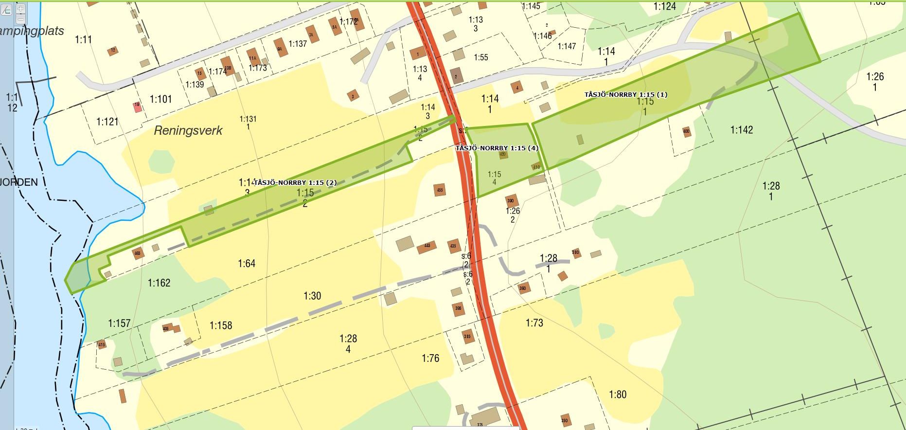 Norrby_Tåsjö 1:15 består av två skiften. Här ser ni skiftet mitt i byn. Strax utanför byn finns ett skogsskifte som kompletterar skiftet i byn som består av "ängsmark".