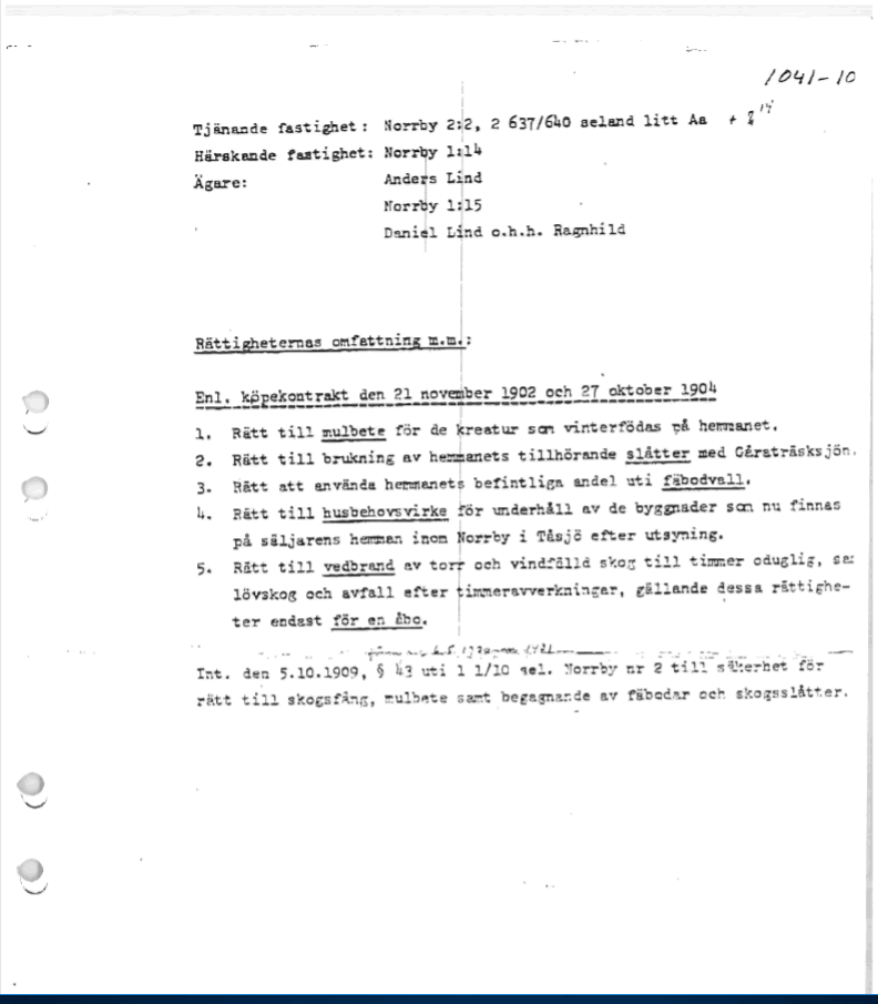 Dokumentet fick jag från Bertil Lind i samband med köpet av fastigheten.