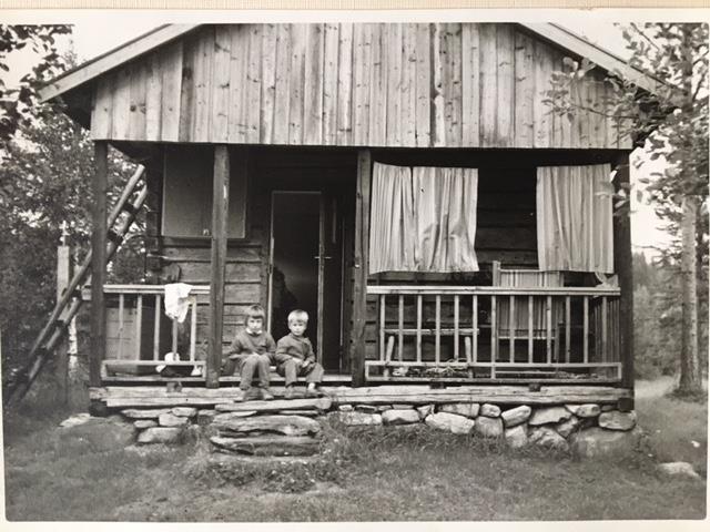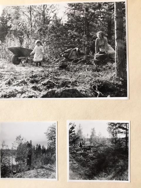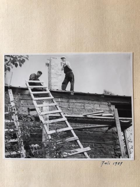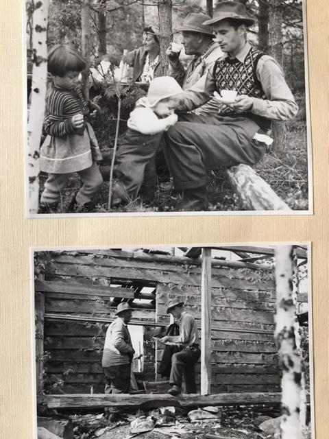 Bilder på lindarkojan när den flyttades till mormorsgården och uppfördes där som en sommarstuga till Irma och rune