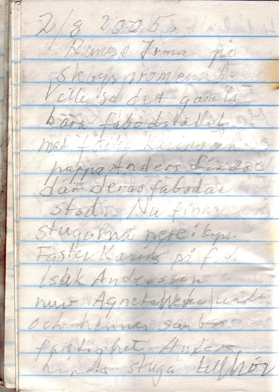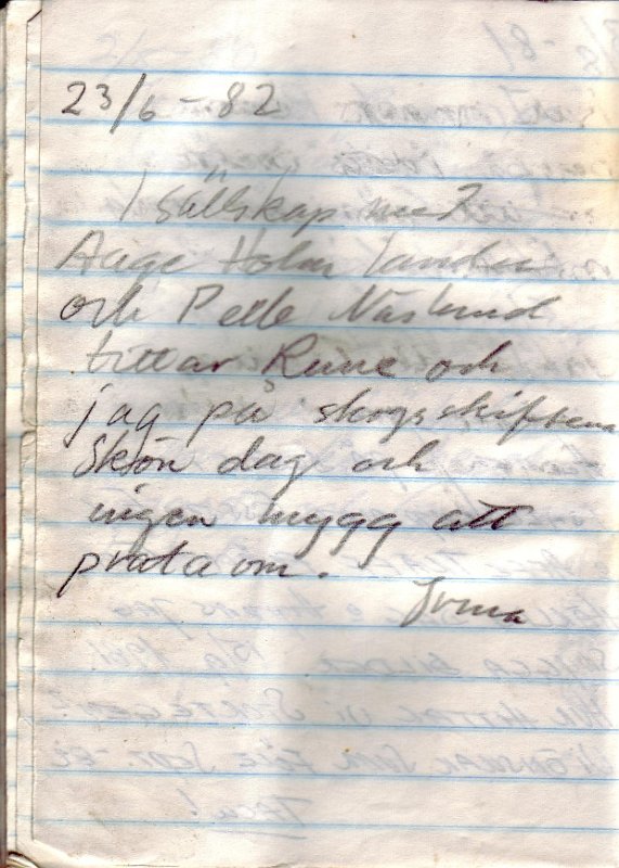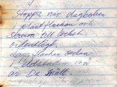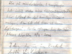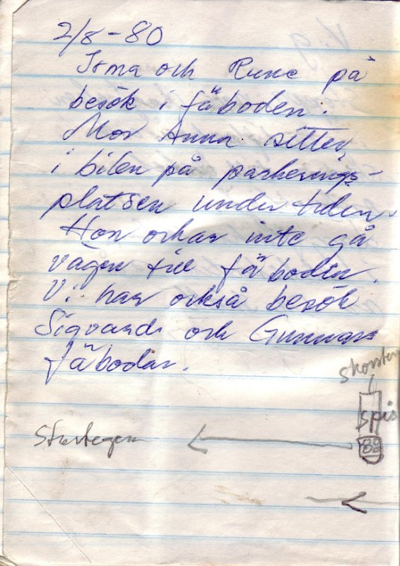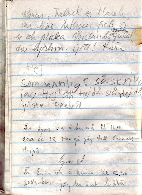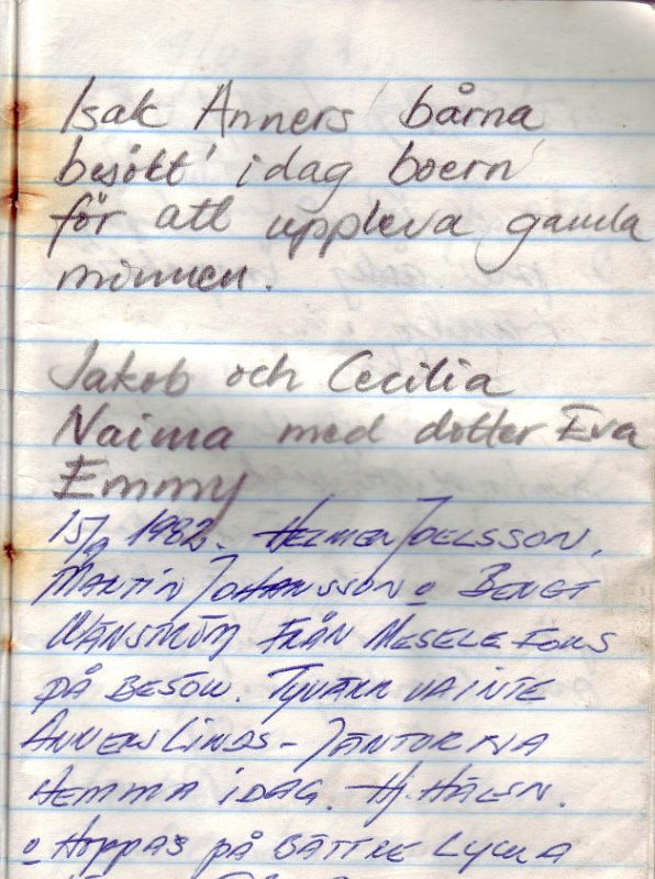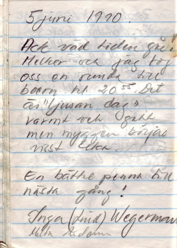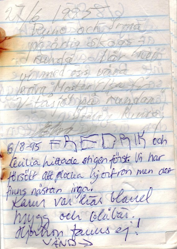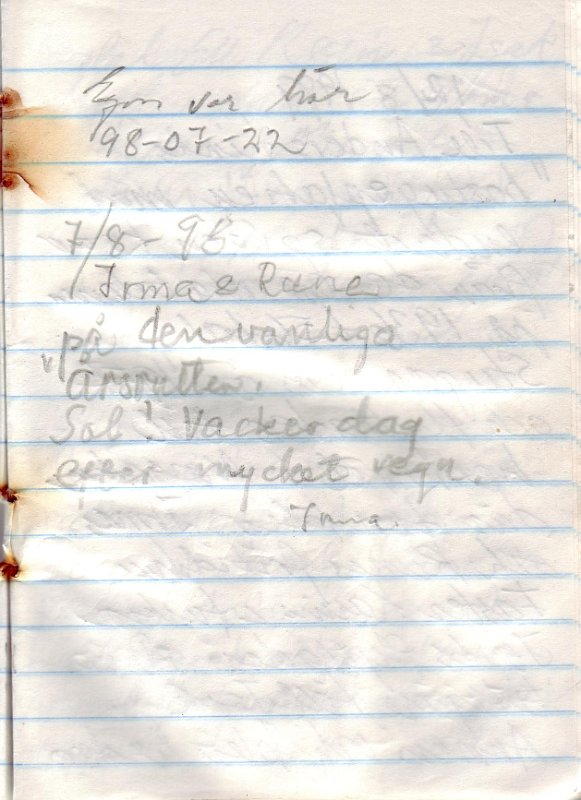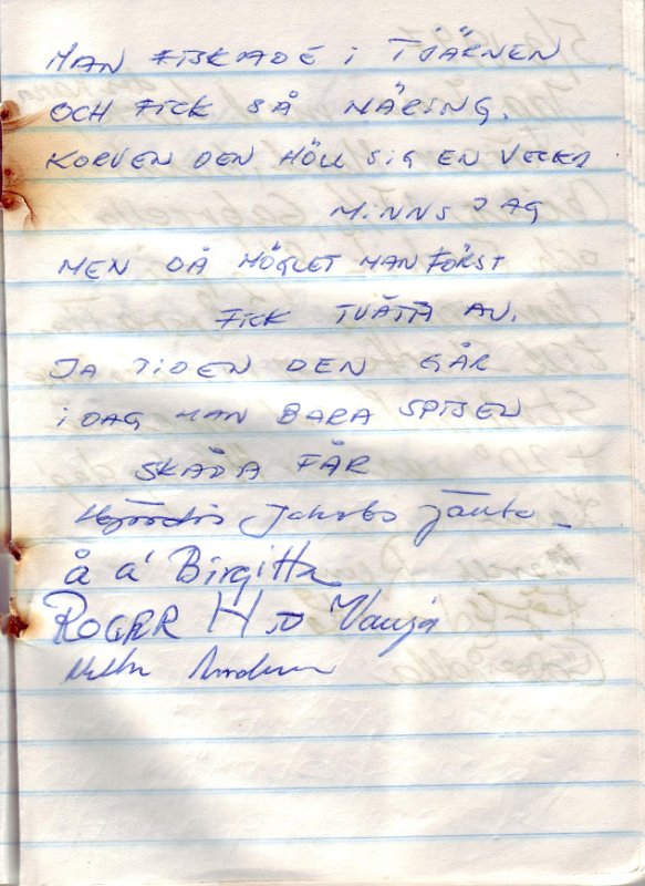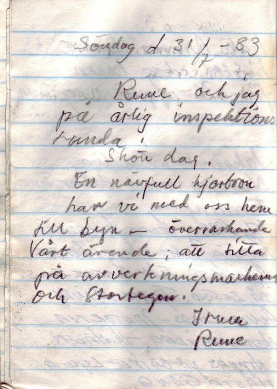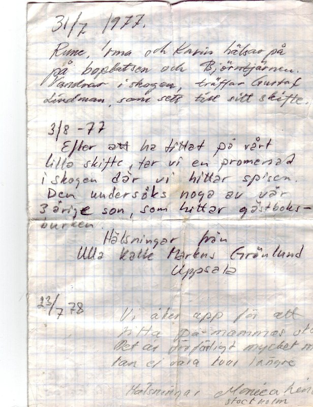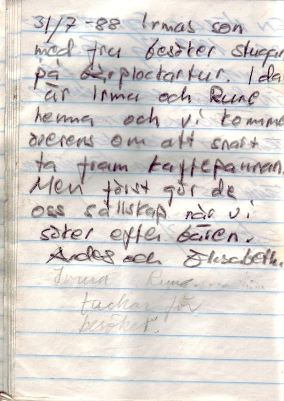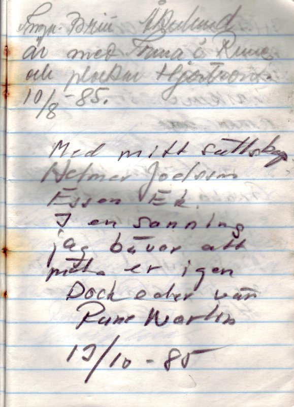 År 1974 lade Rune Alexandersson de första noteringarna och sedan i en "Gästbok" i den gamla järnspisen. Järnspisen tillhör huset han flyttade ned till Anders och Anna Linds hus som sin och Irmas sommarstuga. Huset ägs i dag av dottern Karin. Därefter har besökare fört in hälsninghar vid besök. Nu är besöksboken fulltecknad och det ligger en ny påbörjad på samma ställe i järnspisen. Om du passerar nyboern och järnspisen - skriv en hälsning!.