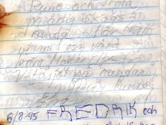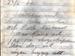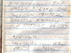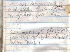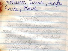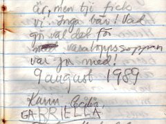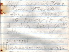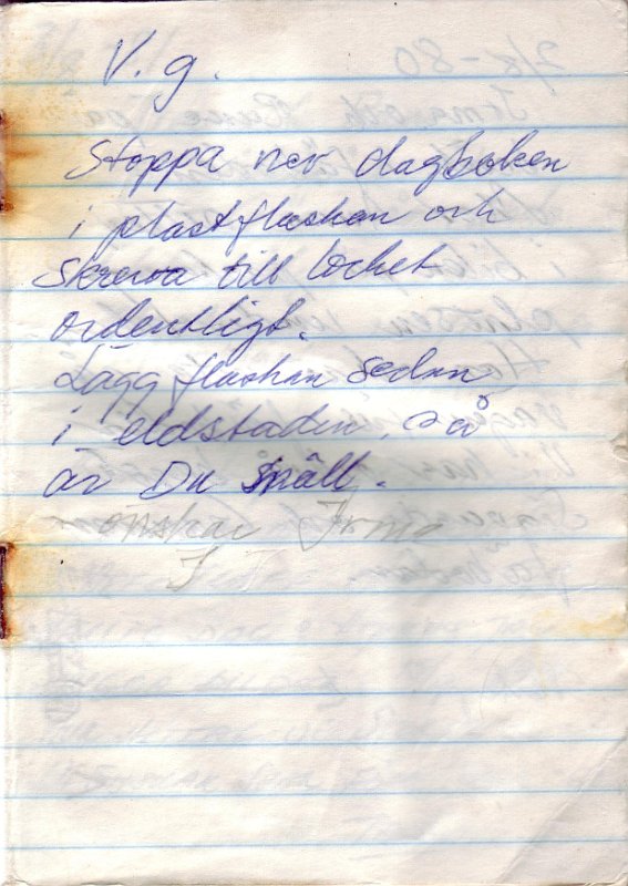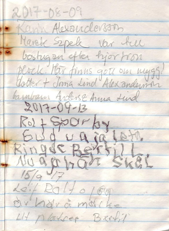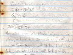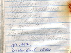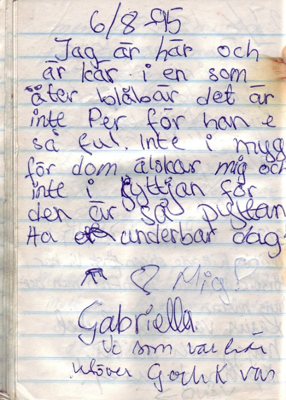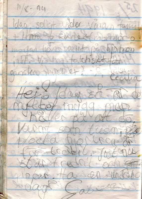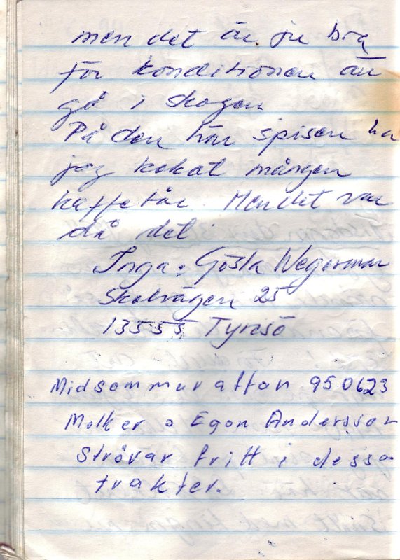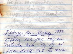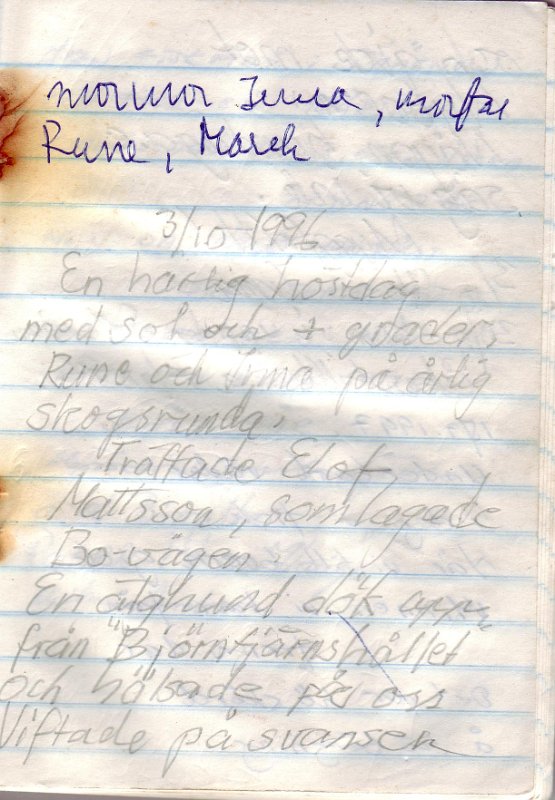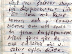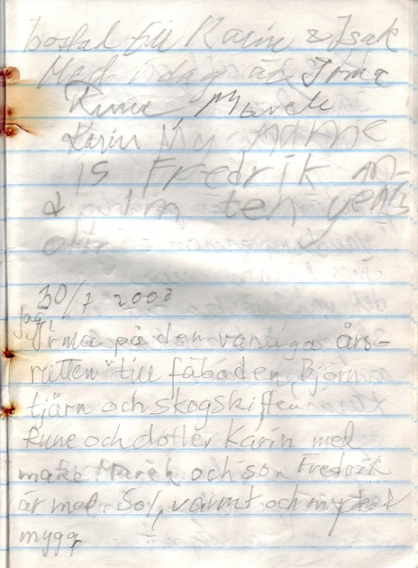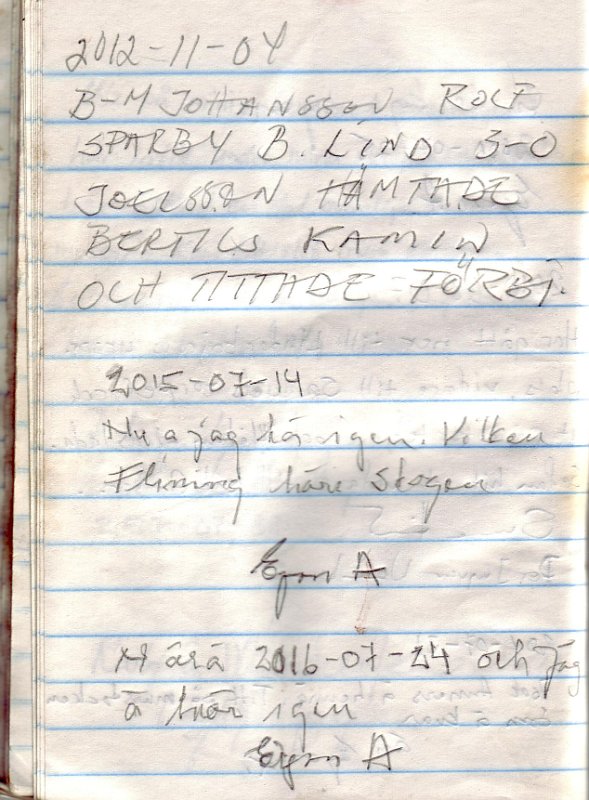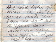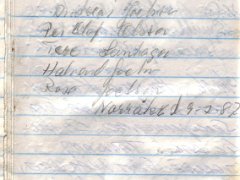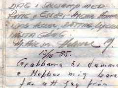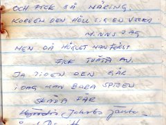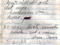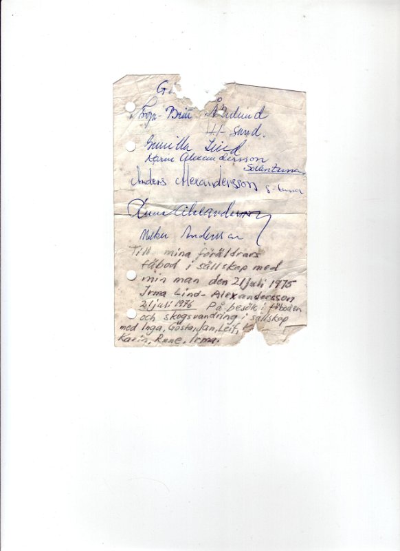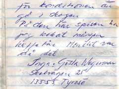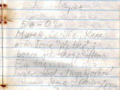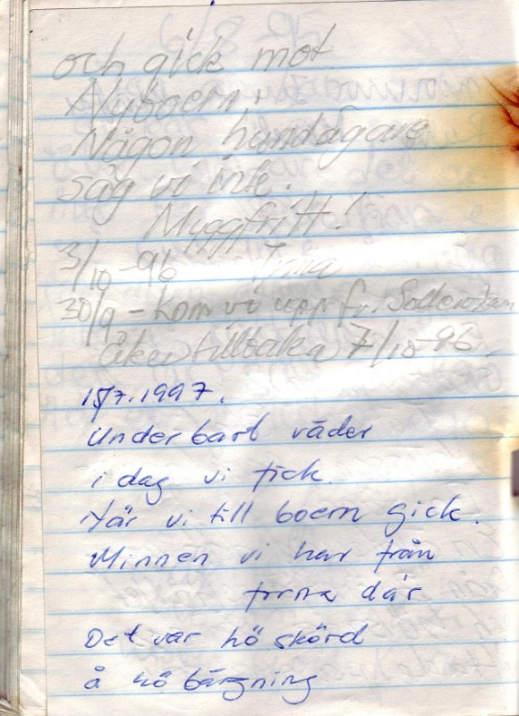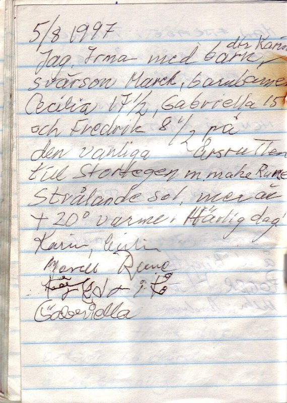 År 1974 lade Rune Alexandersson de första noteringarna och sedan i en "Gästbok" i den gamla järnspisen. Järnspisen tillhör huset han flyttade ned till Anders och Anna Linds hus som sin och Irmas sommarstuga. Huset ägs i dag av dottern Karin. Därefter har besökare fört in hälsninghar vid besök. Nu är besöksboken fulltecknad och det ligger en ny påbörjad på samma ställe i järnspisen. Om du passerar nyboern och järnspisen - skriv en hälsning!.